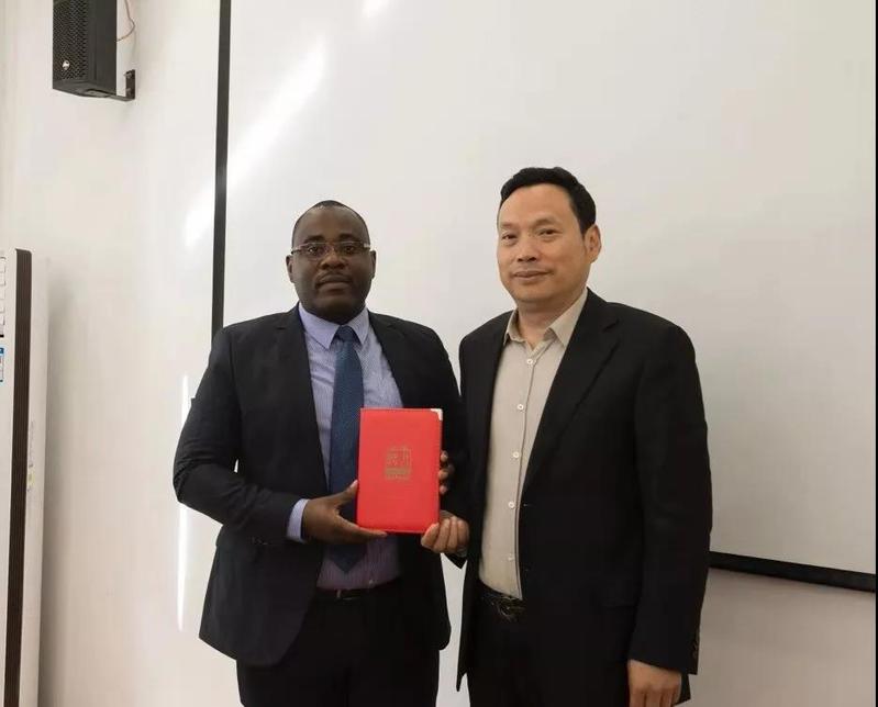 李佐文院长向阿巴斯博士颁发聘书,聘请阿巴斯博士担任斯瓦希里语专业兼职教授,以及坦桑尼亚研究中心兼职研究员。