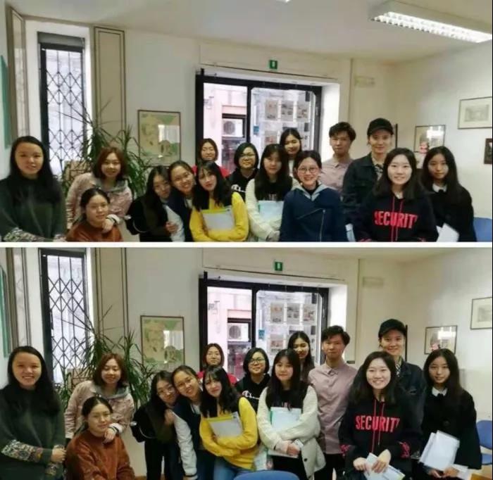 在学习方面,佩鲁贾外国人大学高度重视我班同学学习情况,学校接待处负责人Laura女士及学校语言课程负责人MauroPichiassi教授都给予了大家极大的帮助。到达意大利的第三天,同学们便开始了各个级别课程的学习。佩外课程类型丰富,有语言与文化课、视听课、语音学与音韵学、商业术语和贸易来往信函要素等拓展和专业课程。同学们有了国内两年的专业学习作基础,如今体验着全意语式课堂和原汁原味的语言环境,与各国学生聚在一起进行交流,互相学习,受益匪浅。意大利老师的授课风格非常有趣,课堂气氛十分活跃。同学们正在逐渐适应意大利老师上课的节奏,并在适应的过程中寻找最佳的学习方法。在前两周的学习中,同学们课堂表现活跃,积极表达自己的想法,受到了佩外老师们的肯定。