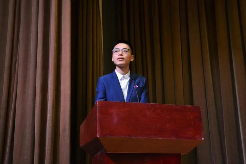随后,在校生代表、2018—2019学年外国语言文化学院分团委副书记、2016级英语班班长吴浩进行发言。他认为应该努力做到理性思考、学会如何选择、以及如何为自己的选择负责。他还讲述了自己对于校训“立德、敬业、博学、竞先”的理解,希望在座新生“学会享受大学生活,不断认识自己;懂得珍惜大学时光,不断突破自己”。