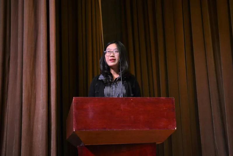 2018级外国语言学及应用语言学专业跨文化交际与语言传播方向硕士研究生孙静萱作为新生代表发言。她就如何度过校园时光和在座新生交流了自己的感想。她认为应该继承修身治学的优良传统,丰富体验拓展视野,并“在大学生活中养成有毅力、目标明确、感受力敏锐和对生活充满好奇的生活态度”。