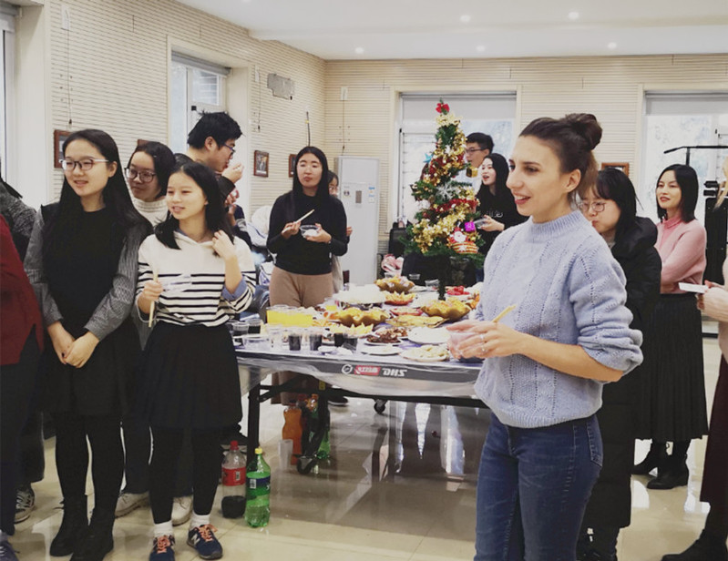 2018年12月26日下午三点,18法语班师生在外国语言文化学院33号楼教工之家,为即将回法国的外教Magali举办了欢送会。恰逢圣诞节余温未散,欢送会因此多了一份节日的喜庆。法语班全体同学在班主任陈明珠、专业教师徐海燕、尹明明的组织下举办了此次欢送会,刘宏欣、刘颖、孟兰娟、丁硕瑞、赵家仪等学院教师受邀出席。