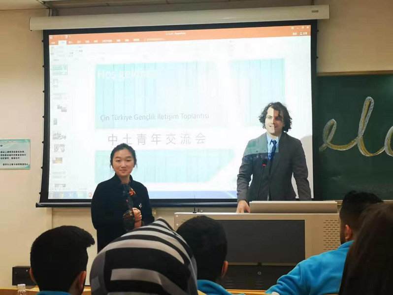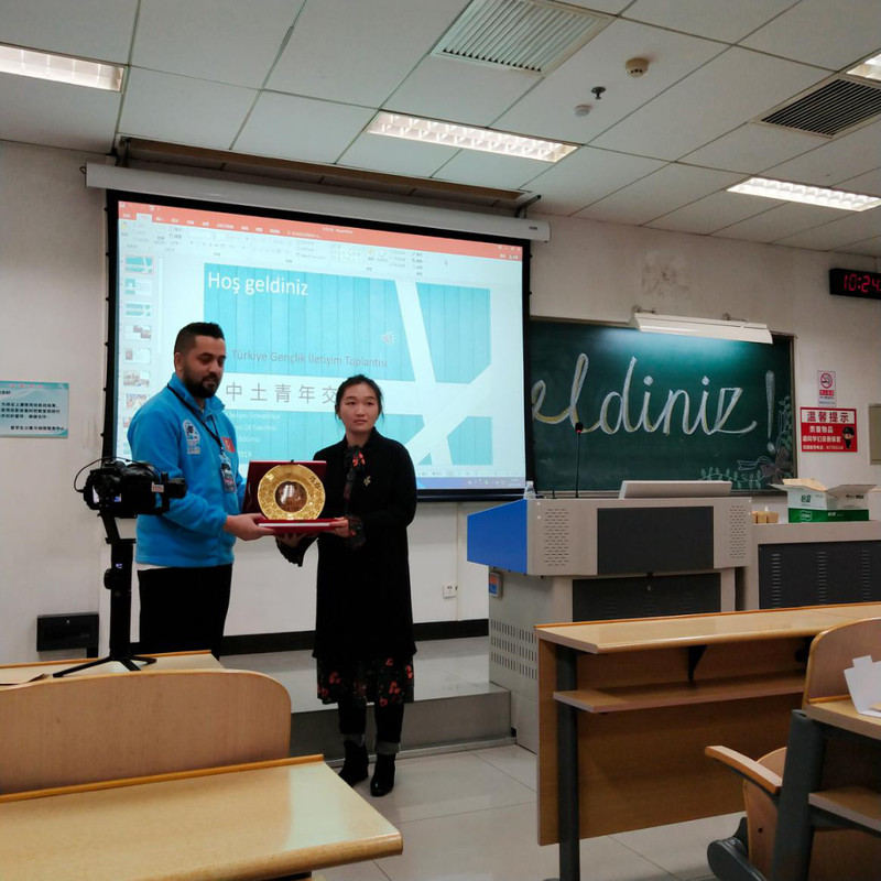 3月13日上午10点,土耳其马尔丁省学生代表团一行在土耳其驻华使馆二等秘书埃尔达尔先生的陪同下来我校参观交流。外国语言文化学院土耳其语专业负责人龚颖元老师与2018级土耳其语专业学生在48教A808教室组织了一场别开生面的中土青年交流会,就未来合作、人文交流、共建项目等情况进行了深入的探讨。