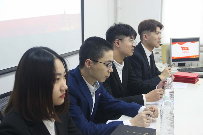 活动开始,主持人赵宇通同学向参赛队伍介绍了我国两会制度的相关知识和本次活动流程。接着,各班参赛队伍围绕大学生就业、高校教育改革、高校食品安全、高校教育学术风气等问题进行提案,讨论和质询。
