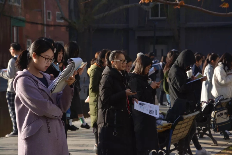 本周一晨间七点十分,春寒料峭,外国语言文化学院2018级本、硕学生在本院教师的指导下,本学期首日于钢琴湖畔开始晨读。在晨读中,我院学生以班级为单位按时在钢琴湖边早读。为了保证晨读活动平稳有序进行,学院专、兼职辅导员,学生党员及每班班长每日在晨读现场积极开展协调监督工作,并应同学需要进行指导。