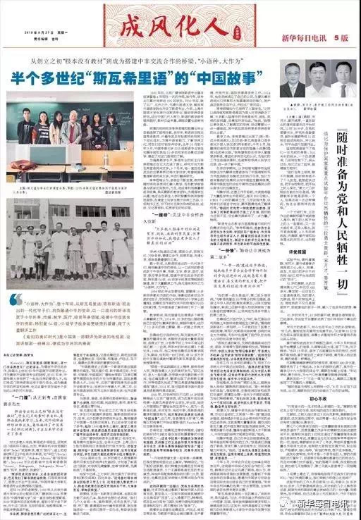 8月27日,《新华每日电讯》5版"成风化人"人物周刊报道了我校自1960年率先于全国开设的“斯瓦希里语”的“中国故事”