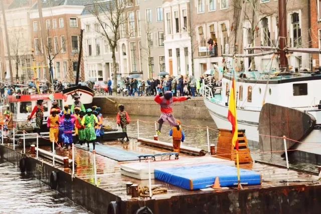 同时,15级荷兰语班同学也积极参加荷兰当地的文化活动,感受荷兰的历史文化魅力。11月18日,荷兰语班全体同学在老师Birgit的带领下观看了圣·尼古拉斯节游船活动。圣·尼古拉斯节是荷兰的传统儿童节日,当圣·尼古拉斯到达荷兰时,荷兰的孩子们都会涌上街头唱着歌曲欢迎圣尼古拉斯和他的助手彼得。在迎接圣·尼古拉斯的街道上,同学们品尝着助手彼得分发的饼干,唱着圣尼古拉斯的歌曲,对荷兰的传统节日有了进一步的深刻体验,感受到了荷兰文化的别样魅力。