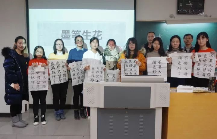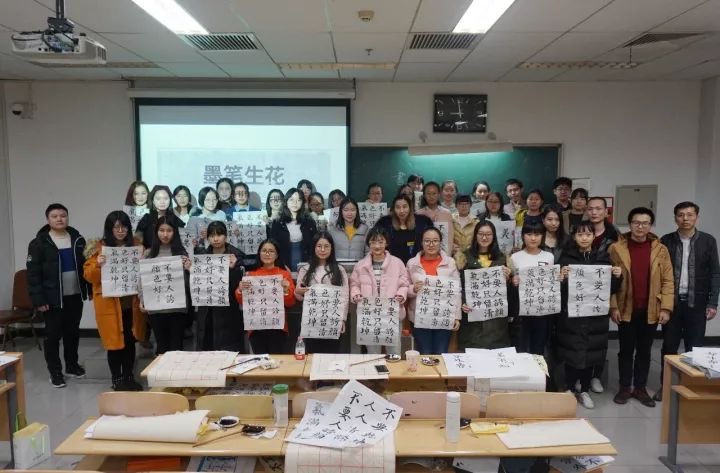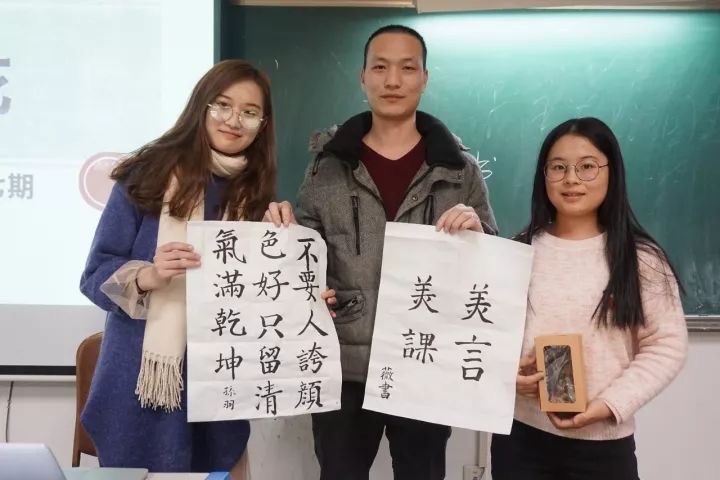 今晚,外国语学院人文通识涵养区之雅涵書院第七期本硕新生书法习练活动在48教A803落下帷幕。我院2015级翻译硕士校友、创业明星、书法爱好者、北京美言美课文化传播有限公司CEO许密杉,外国语学院党委副书记刘宏欣,分团委书记李田雪参加活动,活动由雅涵書院项目负责人满运涵主持。