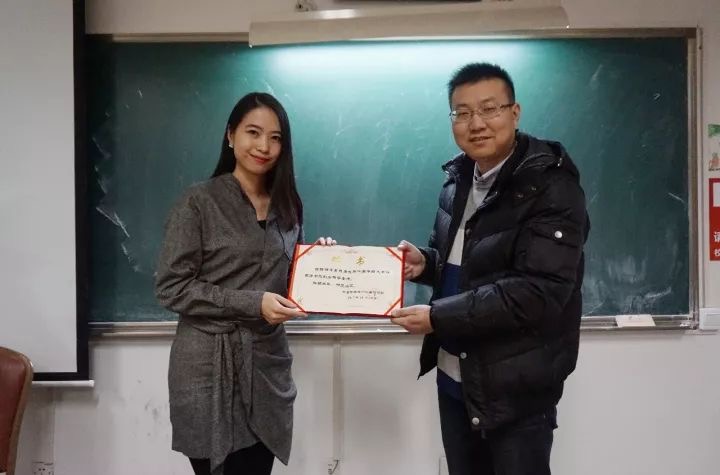 刘宏欣副书记向许密杉颁发了乐鱼网页版页面登录外国语学院创业辅导老师聘书,李田雪、满运涵等为幸运学员颁发美言美课奖品。