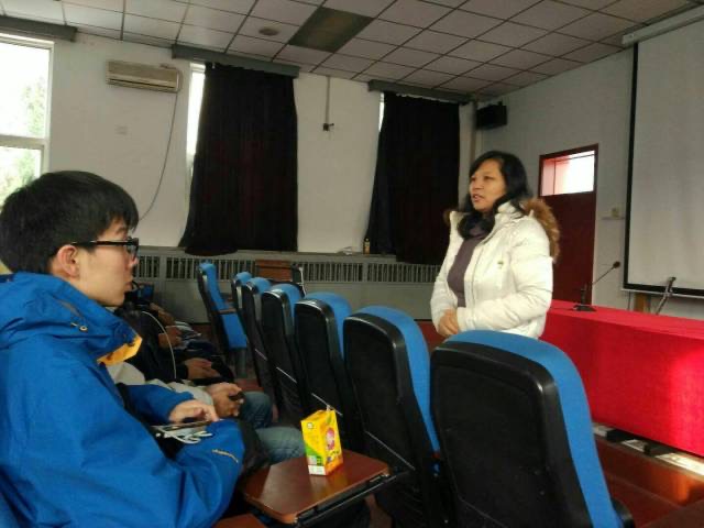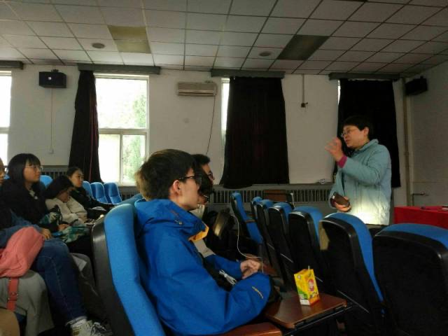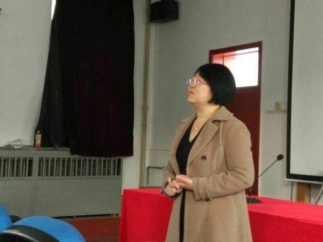 马建丽副教授介绍了翻译专业在英语系的发展历史和教师构成,我校目前有三个年级在读。她还带领同学们回顾了以往影视译制毕业生的优秀传统及高位就业率,并分享了15级学生以高达50%的专四优秀率创下学校记录的榜样事例。