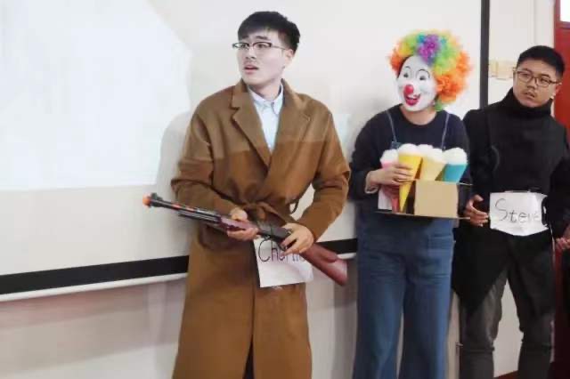同往年一样,各班分别表演了《The Monsters Are Due In Maple Street》(怪物即将降临枫树街)。其中,17普什图语的中东风格贴近专业特色,妆容、服饰、道具别具一格;17葡萄牙语的同学们在表演中插入歌曲与舞蹈,赢得观众掌声;17西班牙语以歌剧开场,富有新意;17日语用角色反转的方式,给剧情增加亮点;17英语的意外结尾使观众惊喜。各班的表演亮点颇多,令人印象深刻。
