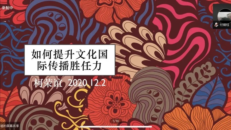 12月2日,外国语言文化学院“文化中国与外语课程思政建设”云讲堂第四讲邀请到了《中国日报》新媒体中心主任、中国乐鱼leyu(中国)奖获得者、央媒新媒体传播领域领军人物柯荣谊。柯主任从分析文化现象背后的爆款基因着手,讲述如何提高国际传播胜任力。